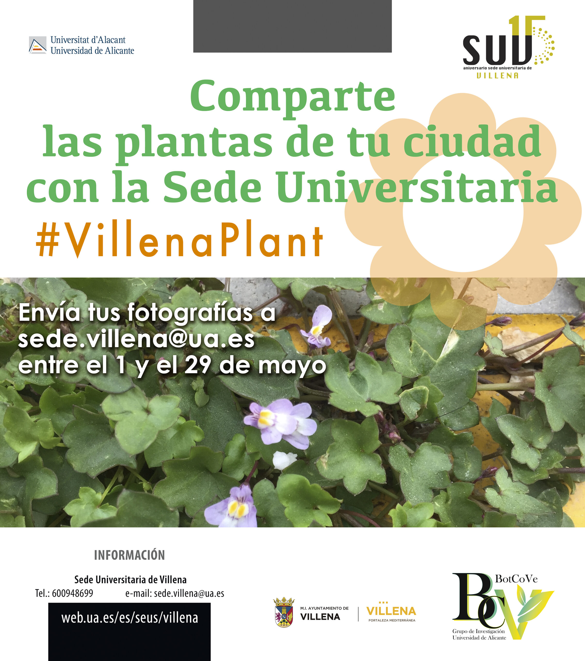 Los interesados pueden enviar sus fotografías a sede.villena@ua.es, detallando el nombre del autor/a y la ubicación donde se ha realizado. Alonso añade que “es recomendable que nos hagan llegar varias fotografías de la misma planta desde diferentes ángulos, para que nos sea más fácil realizar la determinación botánica”.