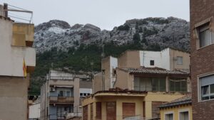 La nieve ha hecho acto de presencia en las montañas que rodean Villena.
