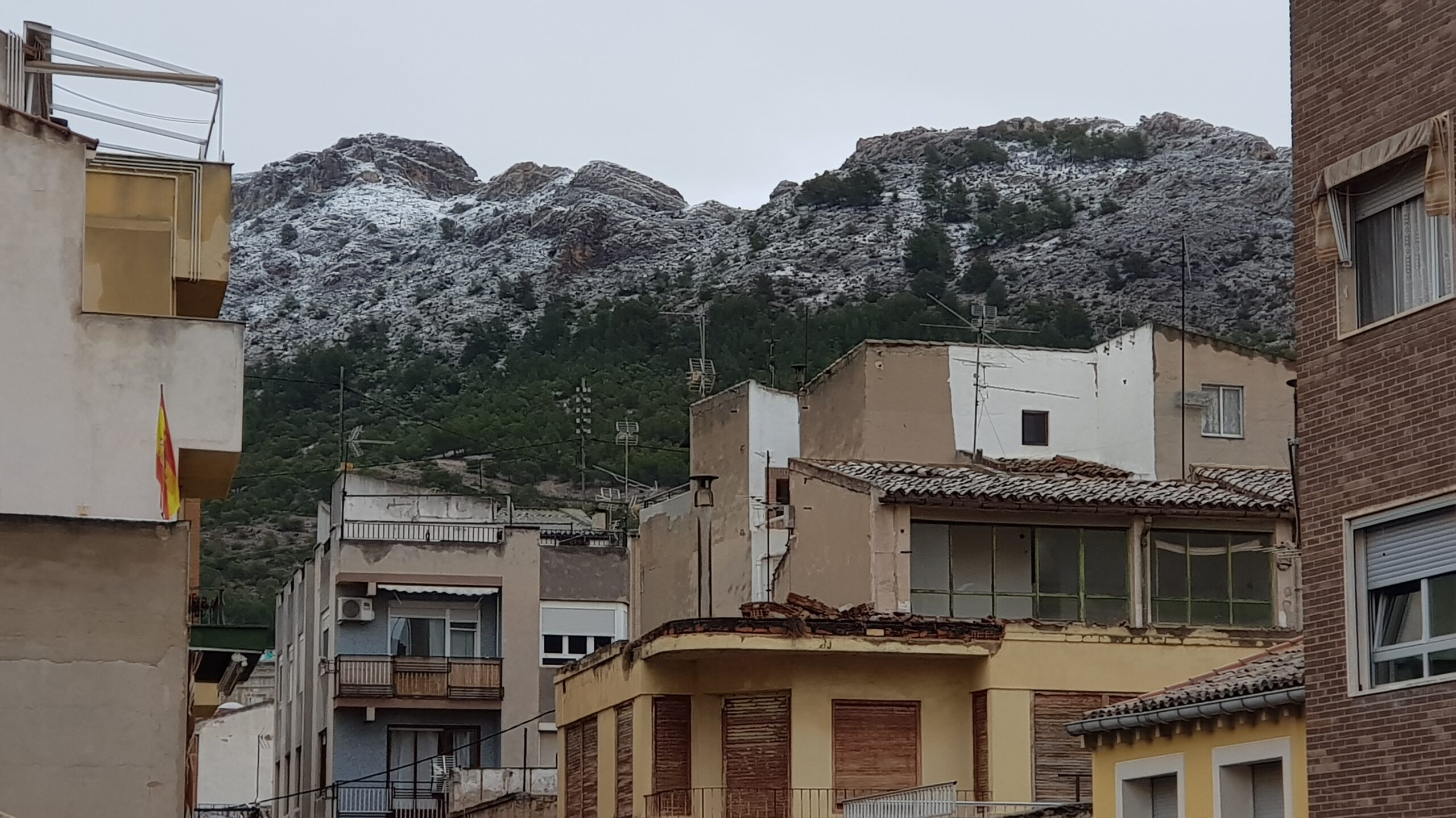 La cima Sierra de la Villa se ha cubierto de blanco, al igual que Peña Rubia y a las 9.00 horas ha comenzado a nevar en la pedanía de Las Virtudes. Se espera que la nieve pueda llegar al casco urbano de la ciudad a lo largo del día.