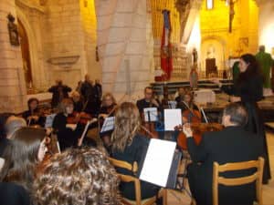 A las 12 se celebró la Eucaristía en la Iglesia de Santiago, donde tocó varias piezas la Orquesta de la Sociedad, finalizando con la Morenica. Al finalizar la Eucaristía se realizó un emotivo homenaje a María José Hernández Micó, directora fundadora de la Orquesta de Cámara de la Sociedad Musical Ruperto Chapí. Después se realizó un pasacalles hasta la comparsa de Contrabandistas donde se hizo un vino de honor.