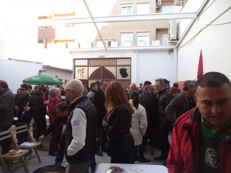 Al mismo tiempo en los locales de la Comparsa de Almogávares se realizaba el concurso de gachamiga y ajo. Posteriormente se realizó el almuerzo con una gran asistencia de miembros y amig@s de la Sociedad. El almuerzo terminó con una tertulia musical.