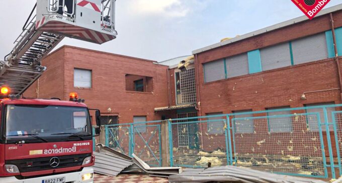 La tormenta anega Beneixama y el viento desprende el techo del colegio