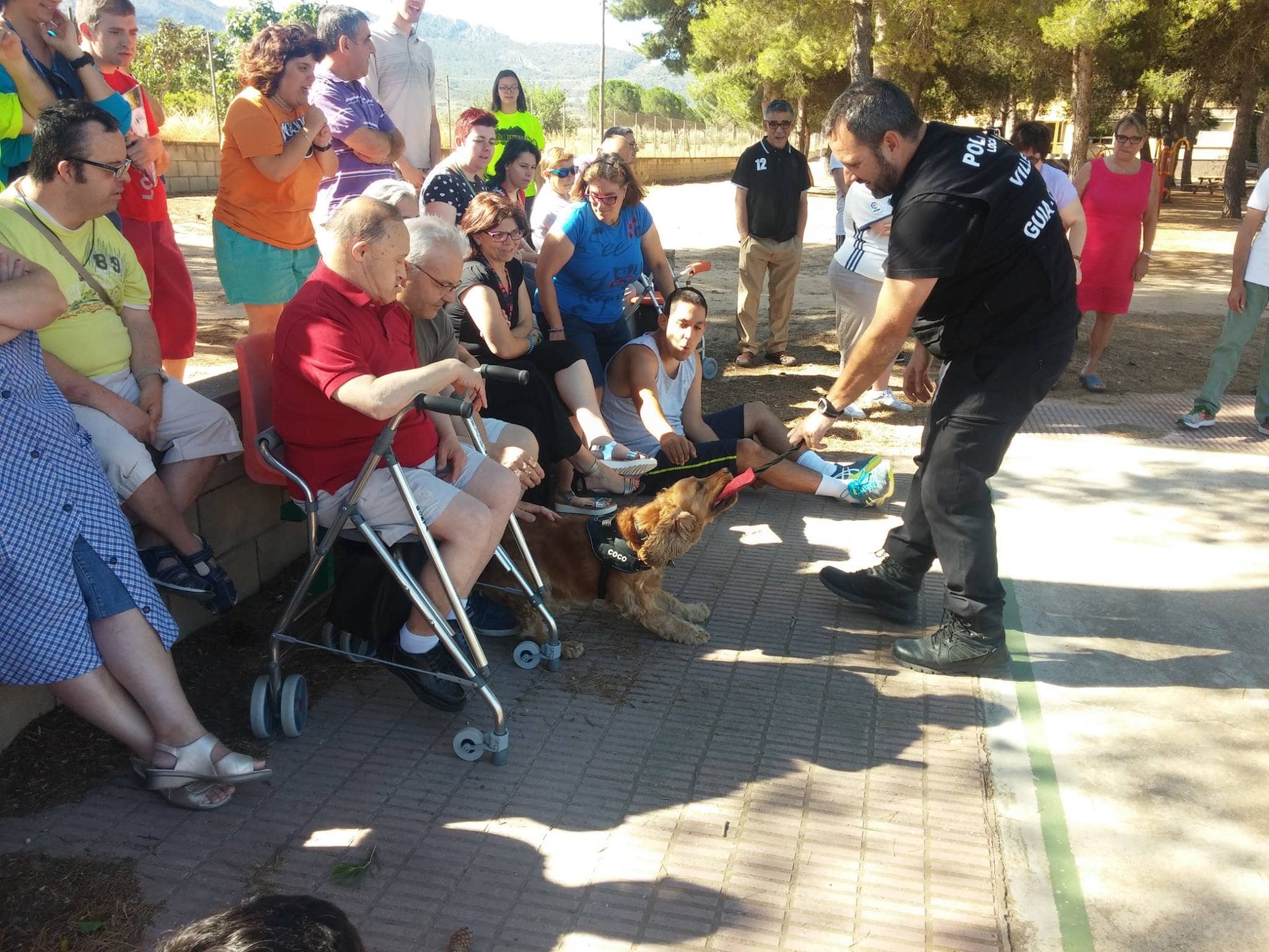 La unidad canina de la Policía Local de Villena, ha visitado esta mañana el centro ocupacional de APADIS para hacer una exhibición con Coco, el perro Policía.