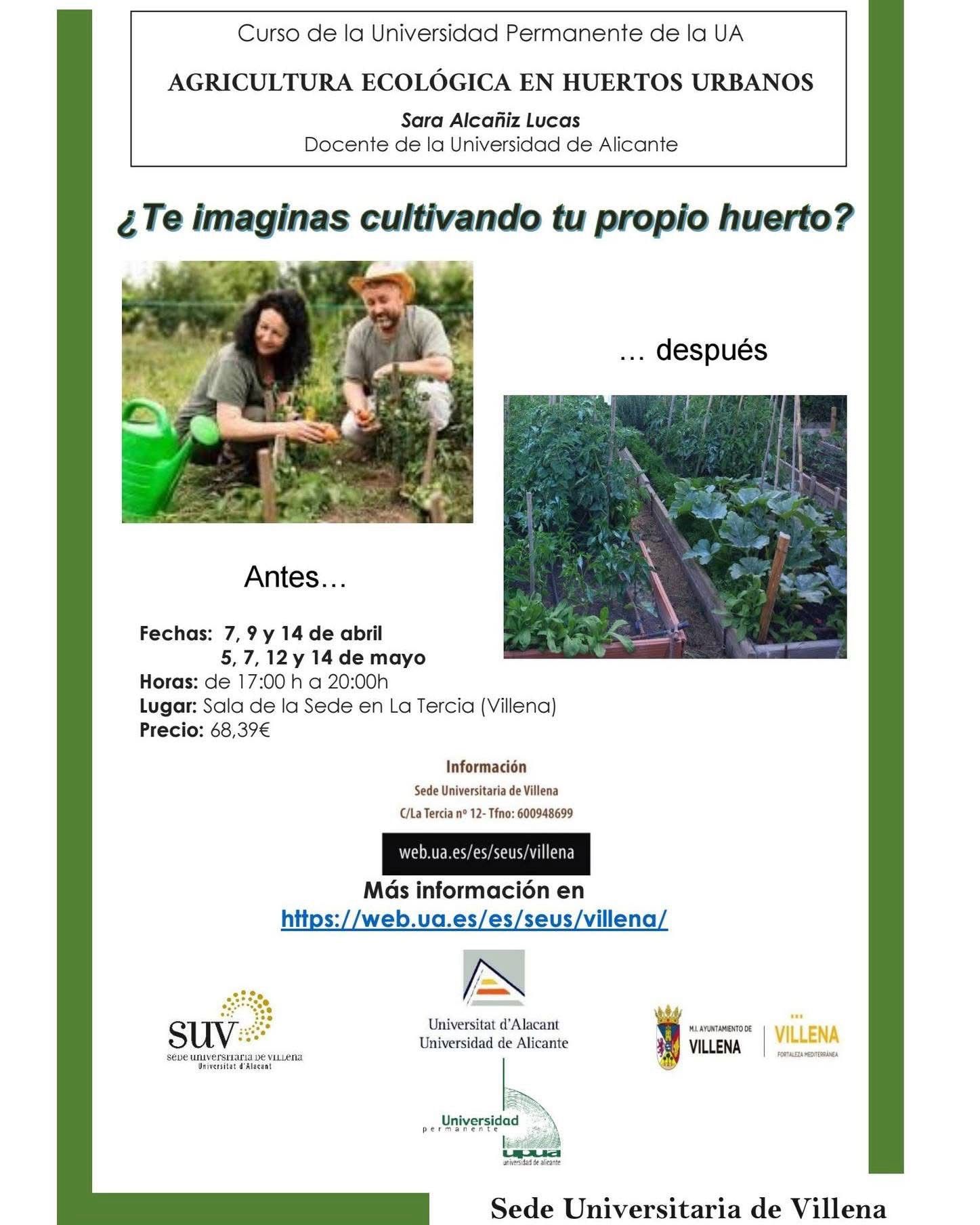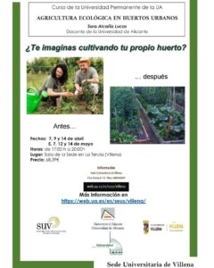 La UPUA (Universidad Permanente Universidad de Alicante) oferta el último curso de las tres ofertas formativas programadas en Villena, se trata del curso “Agricultura ecológica en huertos urbanos”.