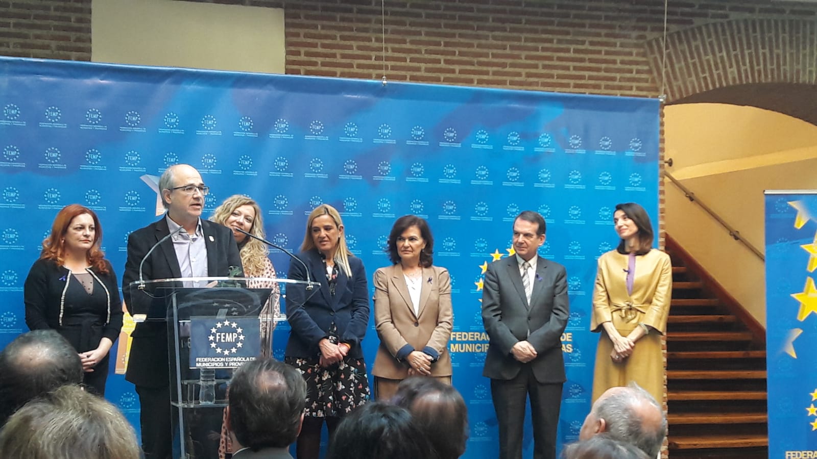 La Vicepresidenta del Gobierno y Ministra de la Presidencia, Carmen Calvo, fue la encargada de entregar los premios a las buenas prácticas locales que convoca la Federación Española de Municipios y Provincias en la lucha contra la violencia de género. Villena ha sido premiada en la categoría de “Detección y coordinación” por el proyecto presentado de “Protocolo de coordinación para la detección, atención y erradicación de la violencia de género en el municipio de Villena”.