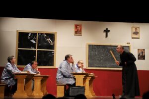 Así, el escenario de la KAKV se transformará en un aula de la época en la que gobernaba el general Francisco Franco y nos transportará a vivencias de niñez en la escuela con el humor por bandera, transmitiendo un mensaje de amistad, lealtad y compañerismo.