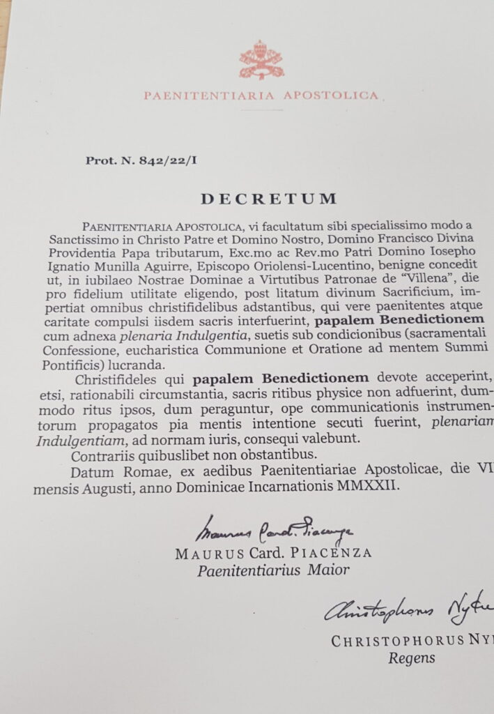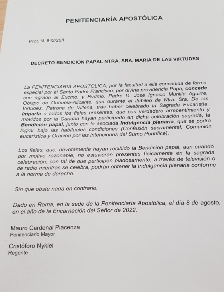 “La Peregrina” Nuestra Señora de los Desamparados, Patrona de Valencia, estará en Villena del 23 al 25 de junio de 2023 dentro de los actos religiosos organizados por la parroquia de Santiago por el Año Jubilar del santuario de Nuestra Señora de las Virtudes, así lo ha confirmado el consiliario y párroco de Santiago, Reyes Rodríguez. La Peregrina visitará el Asilo, las iglesias de Santa María, Santiago, María Auxiliadora y La Paz para ser trasladada al santuario.