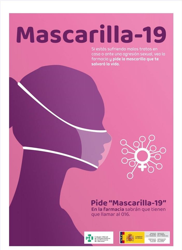 La campaña Mascarilla-19 fue una iniciativa puesta en marcha por el Instituto Canario de Igualdad tras decretarse el estado de alarma como sistema de auxilio para víctimas de violencia de género. En ella las víctimas acuden a las farmacias para solicitar Mascarillas-19 a partir de lo cual el establecimiento contacta con el 016 para poner en contacto a las víctimas con los recursos asistenciales declarados esenciales.