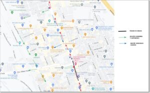 Desde Salesianos hasta C/ San Isidro habrá un solo sentido de circulación (hacia Plaza Cubierta) por el carril derecho en el sentido de la marcha y a partir de San Isidro habrá doble sentido, pero sólo para turismos. El desvío de camiones y autobuses será por Jorge Guillén / Plaza del Mercado / San Juan Bosco y a los vehículos ligeros se les permitirá llegar hasta la intersección de C/ San Isidro y será obligatorio que bajen por ella.