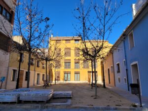 La actuación en la Plaza de Santa Ana se centra en la eliminación de la arena de la pequeña área de esparcimiento de la zona. Esta se adoquinará y se creará un muro de asientos.