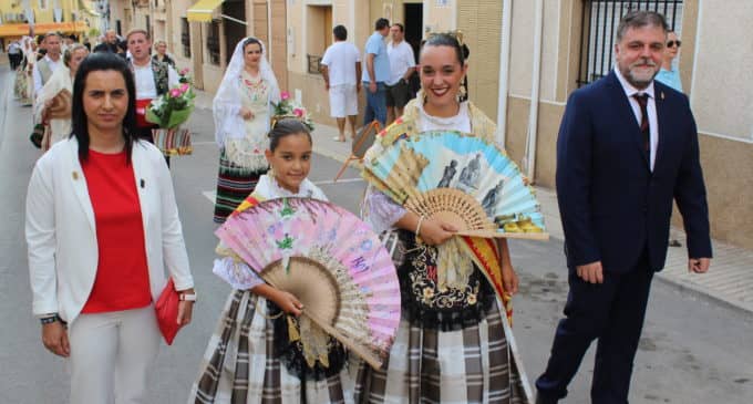 Las Regidoras de Fiestas Mayor e Infantil fueron partícipes ayer de la Ofrenda de Flores a la Virgen del Remedio de Pinoso ataviadas con sus trajes regionales y acompañadas por el Alcalde y la concejala de Fiestas.