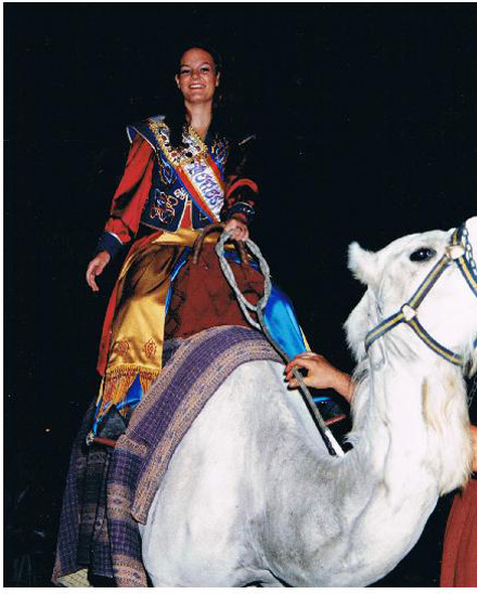 También vivimos años especiales y señalados, como cuando salimos por primera vez de Moras, mi madre y yo, que fue algo en lo que se empeñó “el Fita” encarecidamente. O  en 1994, cuando me eligieron Regidora Infantil y fui la primera Regidora Realista. El último recuerdo y más señalado fue el 2003, año del 75 aniversario, cuando salí de madrina mayor de la comparsa y mi hermano me acompañó siendo el alférez. Fue un duro trabajo, lo pasamos bien, pero nos marcó para siempre, porque a mi padre, al que más ilusión le hacía y por el que lo hacíamos, nos dejó un 1 de agosto. Pero aún así terminamos nuestra experiencia, porque él nos estaba viendo orgulloso desde cualquier punto del firmamento, y ese era el fin.