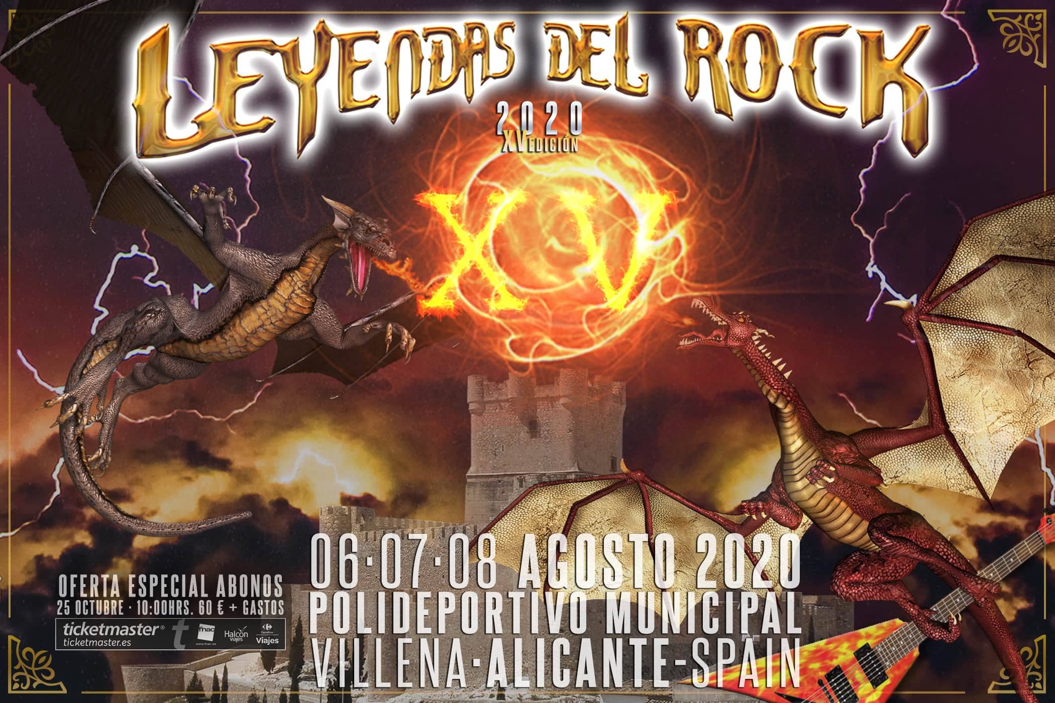 Leyendas del Rock alcanza su decimoquinto aniversario en 2020, y se celebrará los días 6, 7 y 8 de agosto en el polideportivo de Villena (Alicante), cuidado y amplio recinto dotado con césped natural, pista de atletismo, piscinas, pistas cubiertas y áreas arboladas para el descanso de los asistentes, así como una enorme zona de acampada y aparcamiento a tan solo unos metros de recinto.