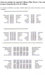 Linea de autobús de conexión Villena, Elda, Petrer y Sax con la nueva Estación del AVE de Villena