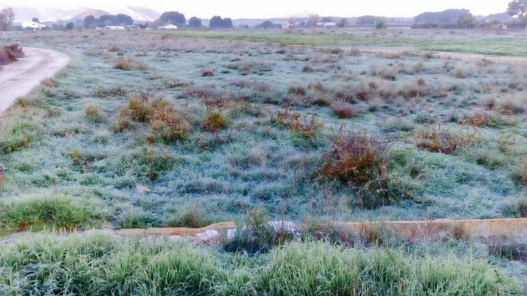 Las zonas verdes y agrícolas del término municipal, aparecieron cubiertas con una pequeña capa de hielo,incluso las lunas de los vehículos situados cerca del retén de la Policía Local.