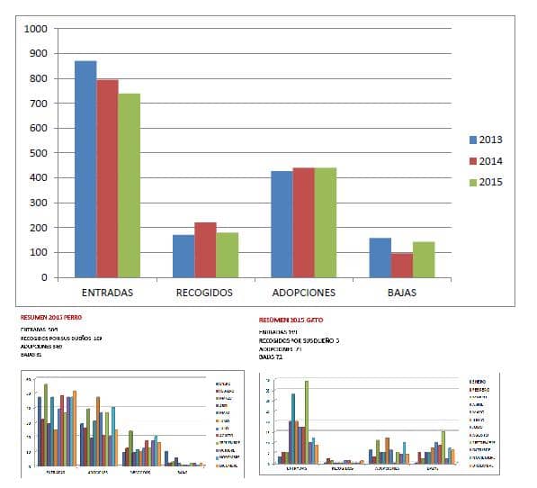 En el balance final de 2015, el total de animales albergados entre perros, gatos y animales de otras especies es de 379.