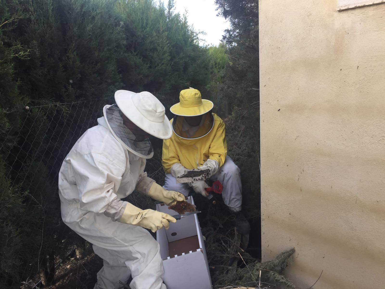 Bomberos del parque de Villena continúan con la retirada de un enjambre de abejas localizado en una casa de campo de Beneixama.