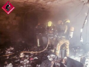 Los bomberos han empleado dos horas en sofocar un incendio que comenzaba sobre las 8.36 horas de la mañana en una vivienda de la calle Padre Pacífico Torres de Biar.