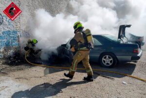 Los bomberos sofocan el fuego de un vehículo en Villena