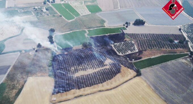 A las 16:44 horas se iniciaba un fuego en el camino de San Juan en Villena. Los bomberos han sofocado el mismo que ha afectado una amplia zona de cultivo, rastrojos de siembra y balas de paja.