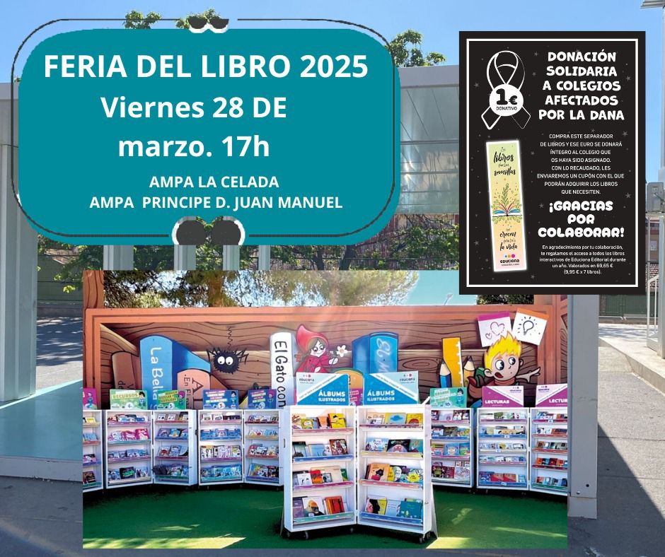 Mañana, viernes 28 de marzo, en el patio del Ceip Príncipe D. Juan Manuel y Ceip La Celada, tendrá lugar una Feria del Libro organizada por las AMPAS de ambos centros y realizada por la empresa EDUCIONA. Estará ubicada en el techado que hay junto a las prefabricadas, desde las 5 a las 7:30h de la tarde.