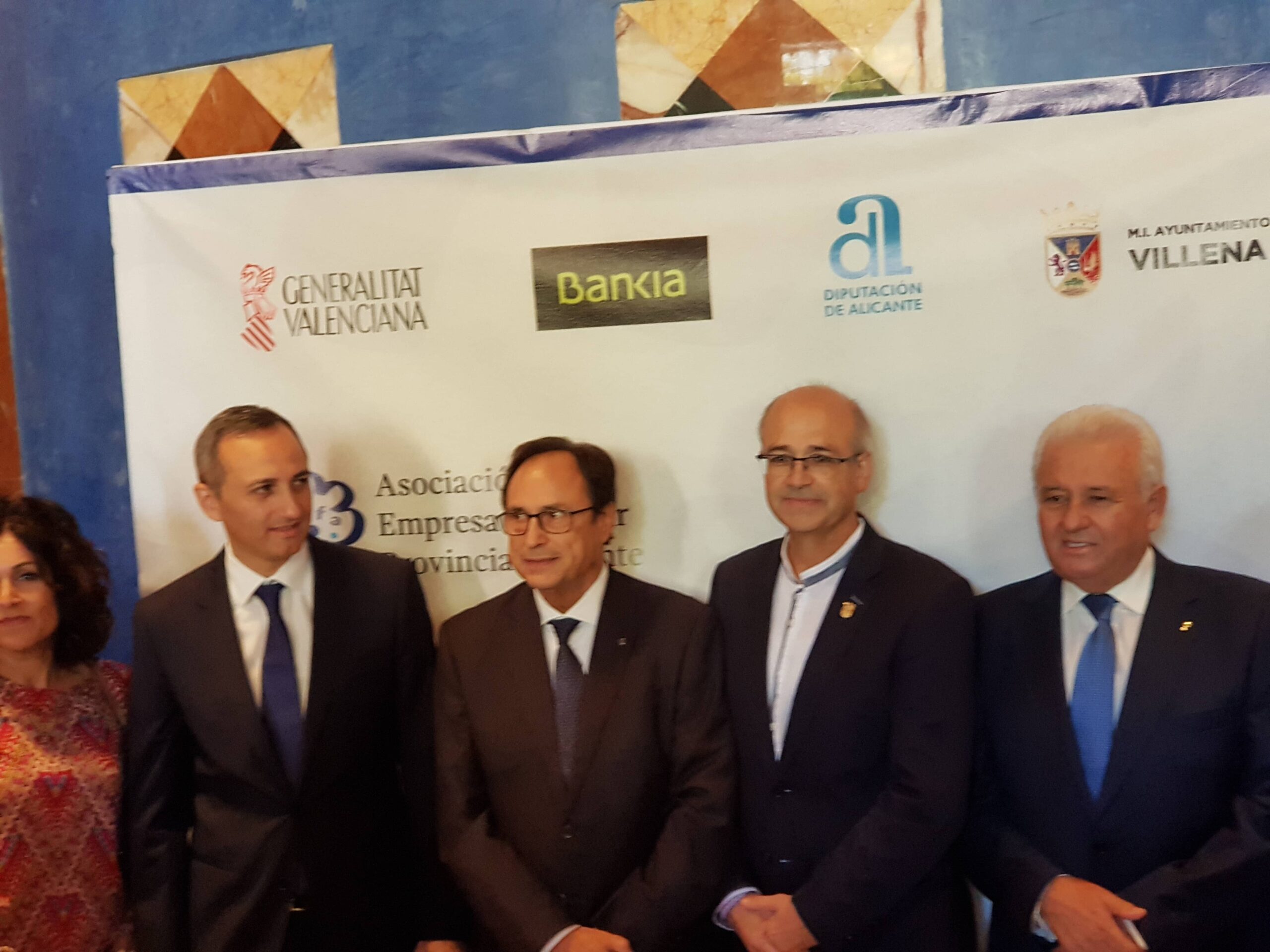 El Teatro Chapí acoge esta mañana la entrega de la XXIII edición de los premios de la Asociación de la empresa familiar de la provincia de Alicante. Un acto que ha congregado a cientos de empresarios alicantinos, así como al Conseller de Hacienda y Modelo Económico, Vicent Soler i Marco, al presidente de la Diputación de Alicante, César Sánchez, así como al presidente de la Cámara de Comercio de Alicante, Bautista Riera, el alcalde de Villena, Javier Esquembre, junto con el presidente de la asociación, Francisco Gómez.