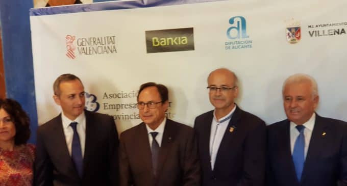 El Teatro Chapí acoge esta mañana la entrega de la XXIII edición de los premios de la Asociación de la empresa familiar de la provincia de Alicante. Un acto que ha congregado a cientos de empresarios alicantinos, así como al Conseller de Hacienda y Modelo Económico, Vicent Soler i Marco, al presidente de la Diputación de Alicante, César Sánchez, así como al presidente de la Cámara de Comercio de Alicante, Bautista Riera, el alcalde de Villena, Javier Esquembre, junto con el presidente de la asociación, Francisco Gómez.
