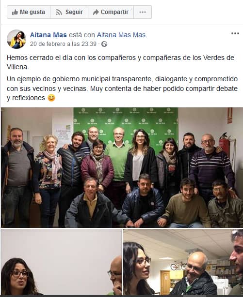 En un reciente acto electoral Aitana Mas, candidata a concurrir en las primarias para encabezar la lista por Alicante de Compromís en las elecciones autonómicas, aseguraba que sus compañeros y compañeras de los Verdes de Villena eran “un ejemplo de gobierno municipal transparente y comprometido con sus vecinos y vecinas”. Sin embargo, desde el departamento de Intervención se demuestra que esa afirmación es, cuanto menos, exagerada y, desde luego, no se corresponde con la realidad.