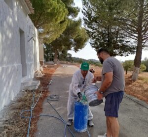 Para la ocasión los vecinos han procedido a encalar las casas comunes de la Colonia de Sierra Salinas.