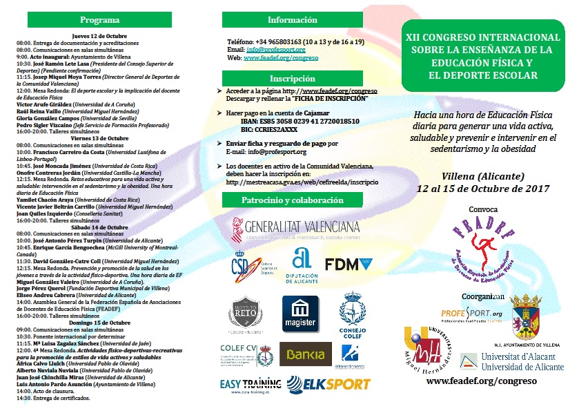 congreso internacional deporte escolar presentación Exterior Tríptico 11 octubre, 2017Comentarios Editor