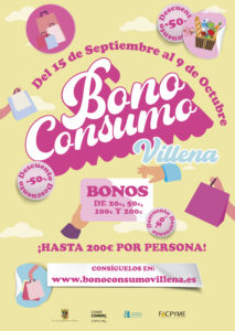 El Gabinete de Promoción y Desarrollo Económico ha avanzado en la campaña de difusión de esta iniciativa con la remisión de la información a los diferentes establecimientos susceptibles de participar y una campaña de ‘puerta a puerta’ en persona con agentes informativos. Además, está operativa la web www.bonosconsumovillena.es desde la que los establecimientos se pueden adherir a la campaña, los consumidores podrán adquirir los bonos de consumo a partir del día 15 de septiembre y desde la que se puede disponer de toda la información relativa a esta iniciativa.