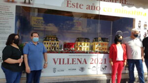 La exposición recrea un desfile en el que se puede ver los clicks con los trajes de las catorce comparsas que conforman los festejos patronales de Villena, la tribuna de autoridades, la iluminación festera, los sanitarios, así como la Banda Municipal de Música junto a la Morenica en la plaza de Santiago con la Casa del Festero de fondo.