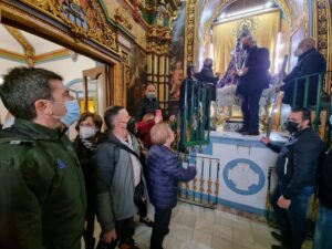 Posteriormente, el responsable provincial se ha desplazado hasta el Santuario de Nuestra Señora de la Virgen de las Virtudes, patrona de la ciudad, donde ha acompañado al Paso de la Virgen desde el Camarín hasta el altar, junto al alcalde del municipio, Fulgencio Cerdán.