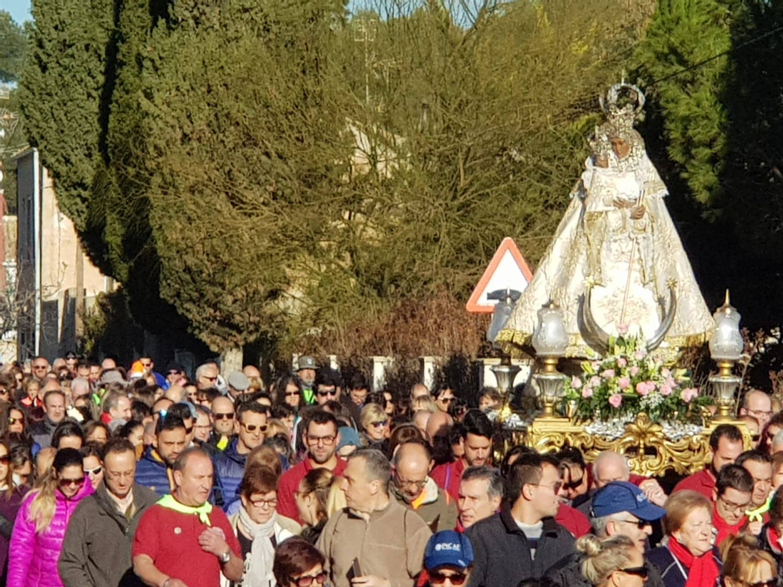 A pesar de que las temperaturas estaban varios grados por debajo de las habituales en el traslado de la patrona, muchos villeneros quisieron acompañarla en este camino que ha provocado la situación precaria del santuario de las Virtudes, que se ha tenido que clausurar a la espera de realizar un proyecto que rehabilite el templo y termine con las grietas que sufre.
