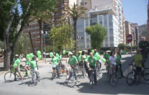 Al tiempo que estaba en la calle la Asociación contra el Cáncer, el partido verde promovía el ejercicio en bicicleta es una  actividad preventiva contra el cáncer. Era el día del Comercio Justo,  Los Verdes ha estado promoviendo otro mundo posible donde se respeten los derechos de todas las personas y del Planeta.