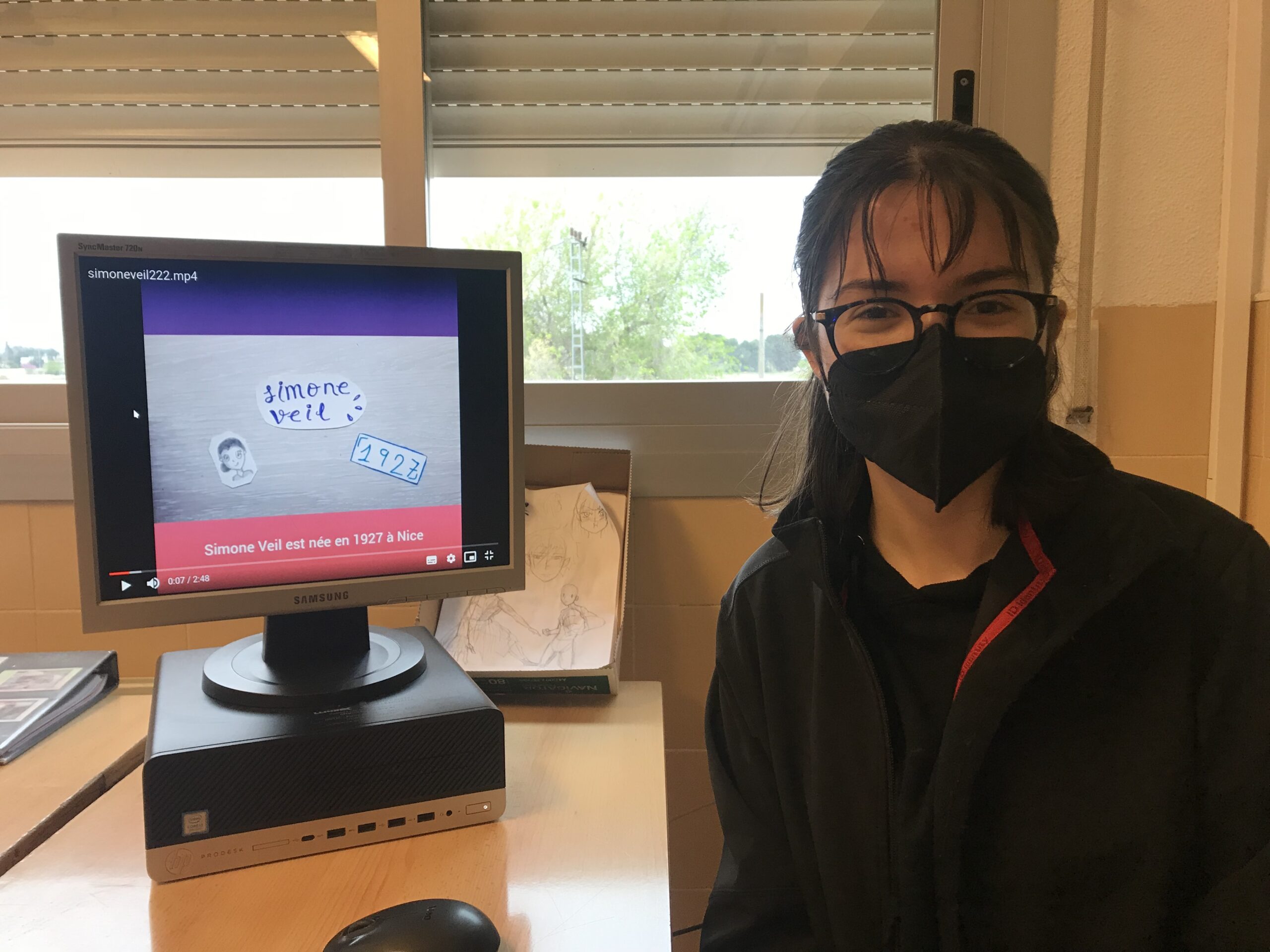 El concurso consistía en realizar un vídeo de cuatro minutos como máximo presentando a una mujer francófona importante. Desde el IES. Navarro Santafé se presentaron ocho vídeos que se pueden visionar en el blog de la revista del centro, asociado en nuestra página www.navarrosantafe.com; Mónica eligió a Simone Veil, abogada y política francesa y a través de dibujos realizados por ella misma presentó en francés a su personaje.