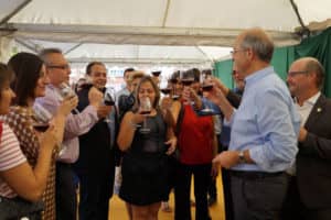 El alcalde de Villena, Javier Esquembre, junto a los ediles de Agricultura y Turismo, José Tomás Molina y Mercedes Menor, procedieron a cortar la cinta inaugural. Tras ello, se dirigieron al expositor de productores locales, para brindar con vino de Villena por el certamen que celebra su 20 aniversario. Después, el alcalde, concejales de la corporación y alcaldes de otras poblaciones comprobaron la evolución del certamen a través de los 20 carteles anunciadores ubicados en el recinto ferial. Muestra Villena nació en los años 90 como Feria del Campo y se ha ido transformando  “hasta convertirse en un escaparate de los productos y servicios de la comarca”, subrayó Esquembre.