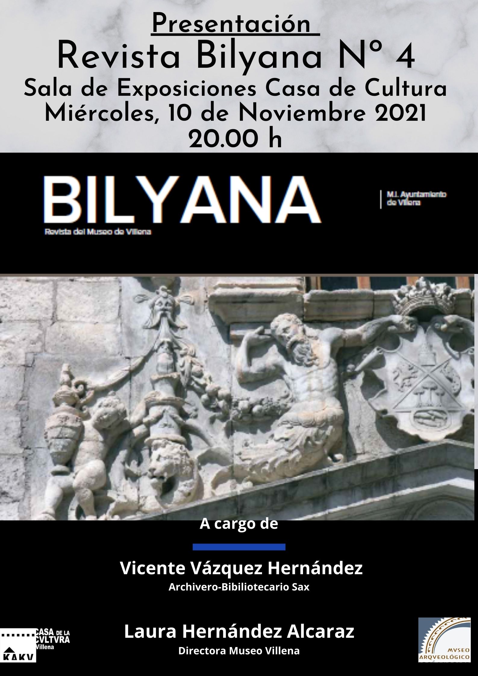 El Museo de Villena presenta hoy en la Casa de la Cultura a las 20.00 horas, un nuevo número de Bilyana, una publicación digital de carácter bianual que recoge artículos de investigación histórica sobre la ciudad de Villena.