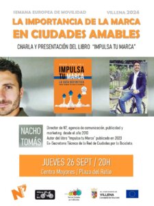Una charla de interés para todos los públicos, y en particular para nuestros/as representantes públicos, técnicas/os municipales, colectivos sociales, personas motivadas hacia la movilidad sostenible, así como personas interesadas en cuestiones de comunicación y Citybranding. Nacho Tomás presentará el libro IMPULSA TU MARCA, firmándolo para todas las personas que lo adquieran.