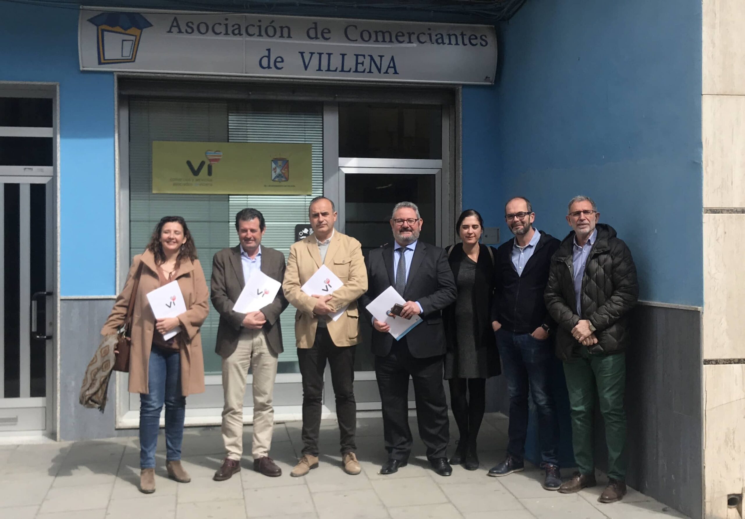 El presidente del Partido Popular de la provincia de Alicante, y número uno a las Cortes Valencianas por esta provincia, ha visitado hoy Villena para reunirse con la asociación de comerciantes de Villena, acompañado del candidato a la alcaldía, Pepe Hernández, de Miguel Ángel Salguero y Paco Abellán.