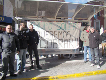 Trabajadores de la cristaleria Soler al borde del despido. Más de un centenar de empleados de las diferentes empresas, que constituyen el Grupo Soler se concentraron en la mañana de ayer sábado en la plaza Religiosa Agueda Hernández Menor para, no sólo reclamar el impago de casi tres mensualidades más la paga extra de navidad y la de julio, si no también para decirle a los empresarios que no aceptarán ningún despedido.