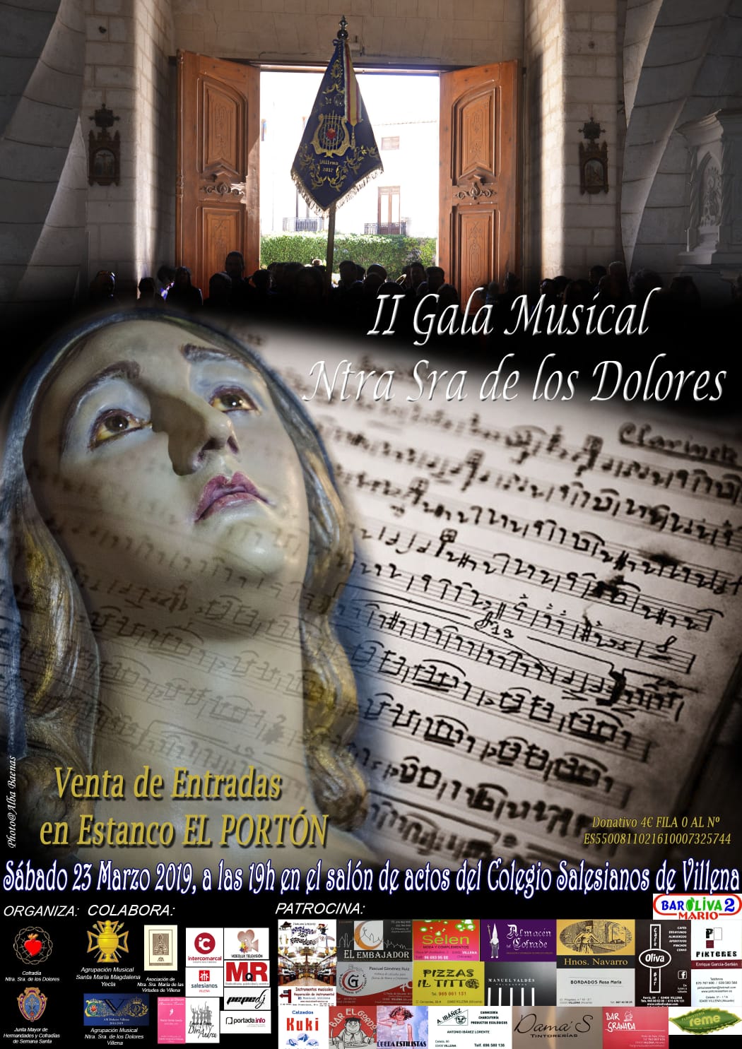 La cofradía de Nuestra Señora de los Dolores ha puesto a la venta las entradas en el estanco El Porón para la II Gala Musical Ntra. Sra. de los Dolores que se realizará el 23 de marzo a las 19 horas en el colegio Salesiano de Villena. El cartel anunciador del acto es obra de Alba Baenas, socia de la cofradía