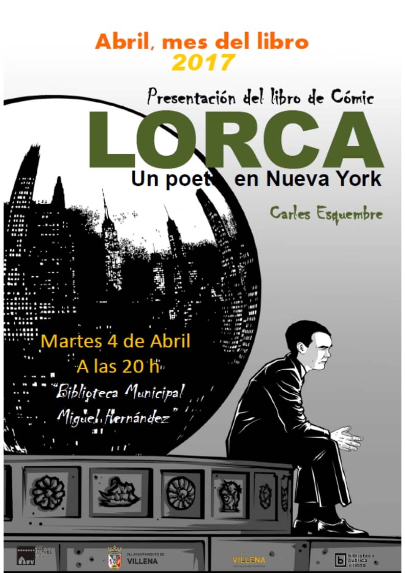 Ahora las Bibliotecas Públicas Municipales traen “Lorca: uno poeta en Nueva York” a Villena la cual ha sido presentada en librerías de toda España y algunos de los principales congresos de cómic de Europa como el de Angoulem en Francia, el de Barcelona o Unicómic.