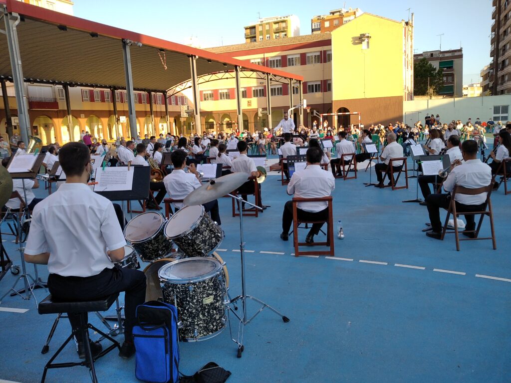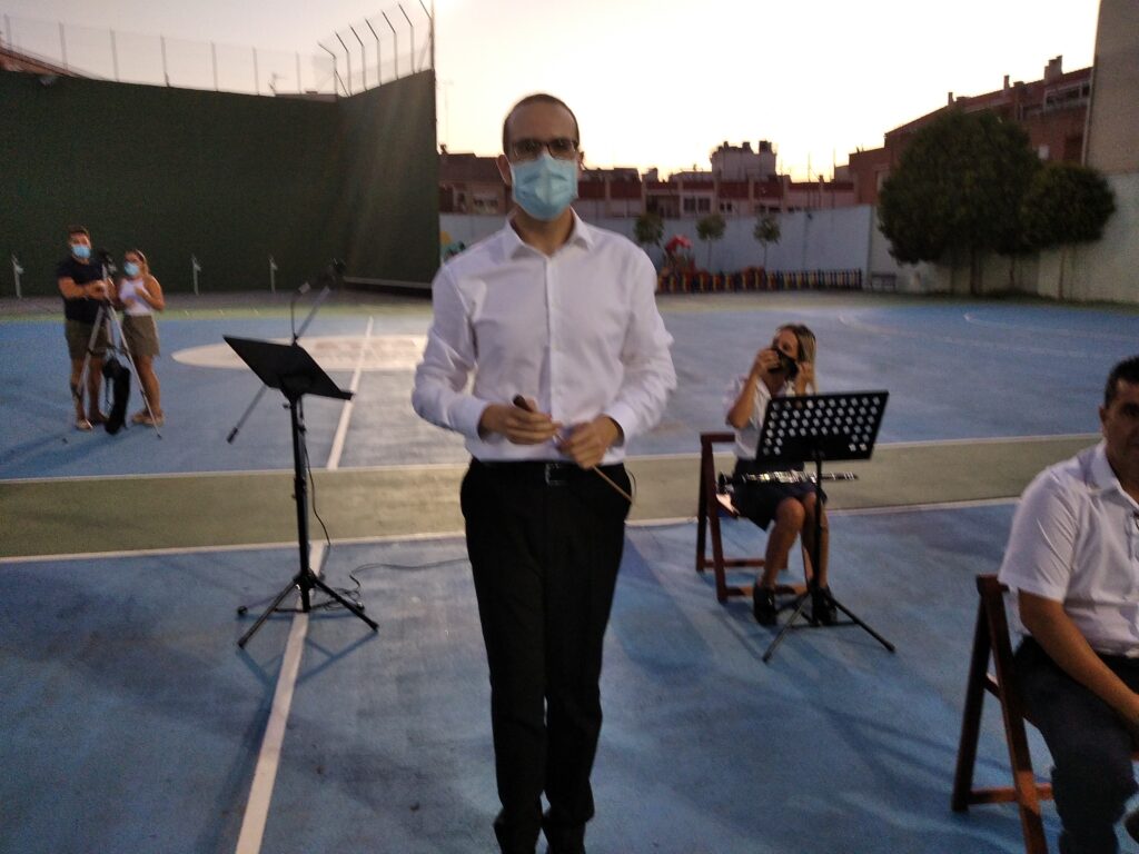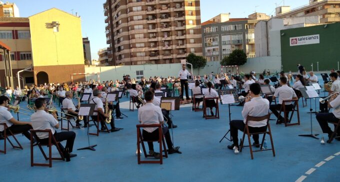 Este viernes pasado, 14 de agosto 2020, la Sociedad Musical Ruperto Chapí volvió a sus atriles, después del confinamiento, y mostró lo que sabe hacer muy bien: interpretar buena música. Y lo hice al aire libre, en el patio del Colegio de los Salesianos a las 20 horas.
