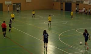 El partido comenzaba a las 12’00h y en pabellón de Sax ya que nuestro gran equipo no tenia pista para jugar en su Palacio del Futsal siendo esto ya un hándicap para nuestras xicas y más en un torneo como este en el que perder más de un partido te deja fuera de las semifinales.