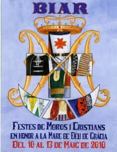 A las 18,00 horas: La Guerrilla (Medició de LEs Espies). Embajada del Moro al Cristiano y Ball de Les Espies, con el traslado y colocación de La Mahoma en el castillo.