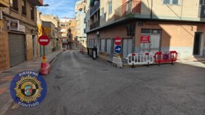 Desde hoy viernes 29 de agosto y hasta la finalización de las fiestas se prohibirá la entrada al tráfico por la calle La Cruz debido a las obras de acondicionamiento de la red de agua y alcantarillado en la calle Escultor Navarro Santafé.