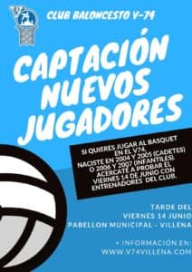 Si quieres jugar al Baloncesto en nuestro club, y has nacido entre 2004 y 2005 (Cadetes) o 2006 y 2007 (Infantiles), no lo dudes y pásate por las canchas del PABELLON MUNICIPAL DE VILLENA el día 14 DE JUNIO para realizar un entrenamiento con entrenadores titulados del club. ¡No hace falta que hayas jugado al baloncesto, tu solo ANÍMATE a venir y participar en los entrenamientos!