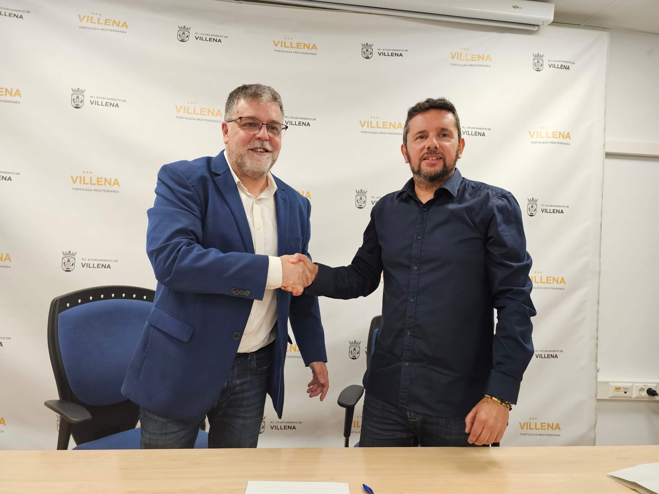 El candidato a la Alcaldía por el PSOE, Fulgencio Cerdán y su homólogo de Los Verdes, Francisco Iniesta, han firmado esta mañana el pacto que consolida un nuevo gobierno de izquierdas en Villena. El objetivo del mismo es dar estabilidad a Villena con un “acuerdo de ciudad para cuatro años, que permitirá el desarrollo de proyectos que están sobre la mesa y en el que se han priorizado los mismos en base al programa electoral “, ha subrayado Cerdán.