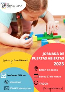 El próximo lunes, 27 de marzo de 2023, realizaremos la jornada de puertas abiertas en el CEIP Ruperto Chapí a las 17:00h en el salón de actos.